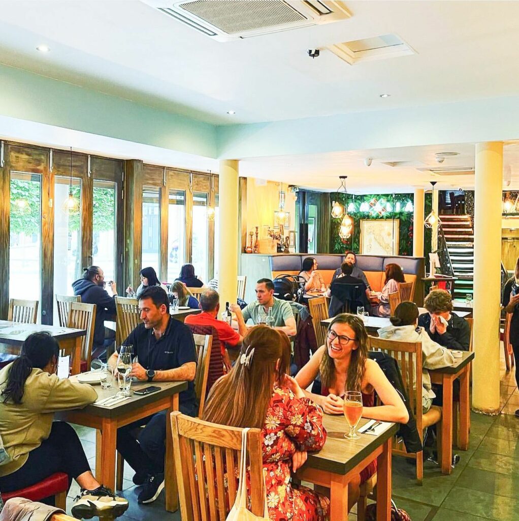 A popular choice amongst shoppers and for lunch dates, Amalia’s courtyard offers a secluded suntrap in the heart of the city. Perfect for sunny days and for celebrating events such as Eurovision, there’s also a very enticing lunch offer of a pizza or pasta dish with a drink for £10.95pp — available Mon–Fri, 12pm-5pm.