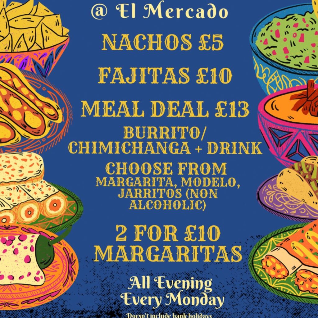 At £32.95 per head it’s fantastic value and a great option for special occasions or starting your day before heading over to town. Since opening in 2023, El Mercado has developed a wonderful reputation for a wide variety of Latin American inspired dishes, colourful cocktails, a fun atmosphere and a gorgeous rear terrace.