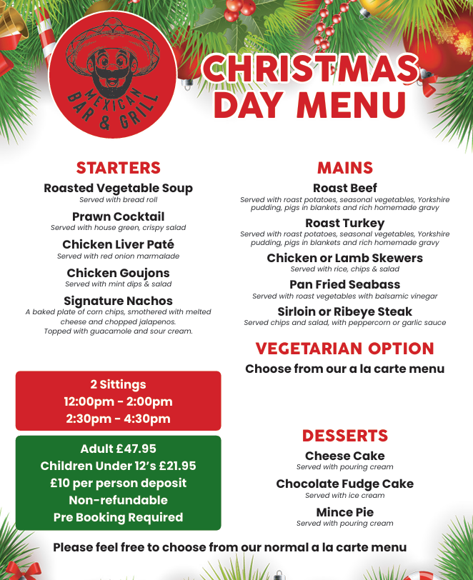 TO BOOK A TABLE FOR CHRISTMAS DAY CALL 0151 345 6382 OR MESSAGE ON FACEBOOK