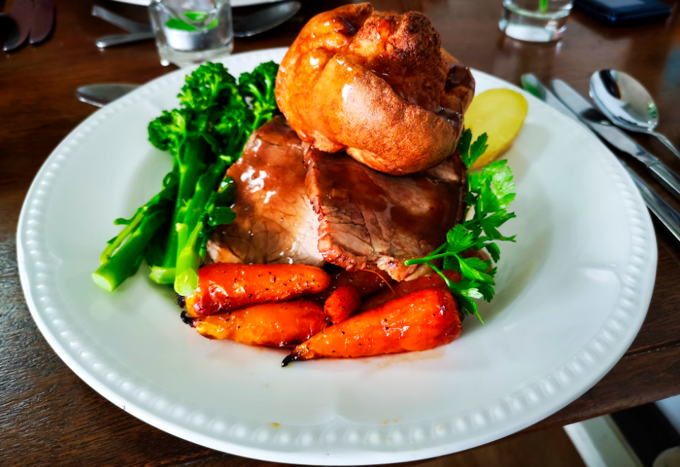 Starters include chicken live pate, goats cheese tartlet or or tomato and red pepper soup. Mains offer a choice of roast chicken, beef or gammon or a nut roast — all served with seasoned vegetables, roast potatoes, Yorkshire pudding and proper gravy. There will of course be heavenly desserts to follow.