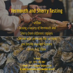 Hope Street’s cool basement hangout, The Pen Factory, is hosting a unique Vermouth & Sherry Tasting Evening in their newly refurbished ‘Wine Vault’ on Wednesday 8th September from 7pm. The classy evening will feature various styles of fortified wines from the best regions and producers, accompanied by premium Iberico ham, freshly shucked oysters and more!