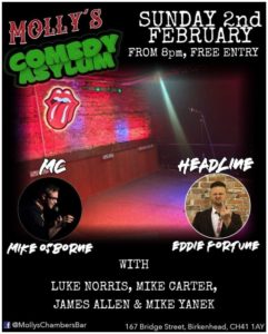 If you’re after a top night of quality live music, open mic nights, comedy, great food, drink and amazing offers then get yourselves down to Molly’s Chambers! A good night at Molly’s is guaranteed and if you’re looking for somewhere to have a good time in Wirral then this amazing venue is the place to be!