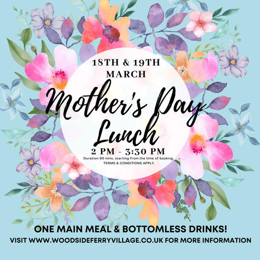 Looking for a fun and boozy way to treat your Mum this Mother’s Day Weekend? Woodside Ferry is offering one of the best bottomless brunch deals around! On Sat 18th and Sun 19th March, from 2pm until 3.30pm on both days, you can enjoy a main meal and unlimited drinks for 90 minutes!