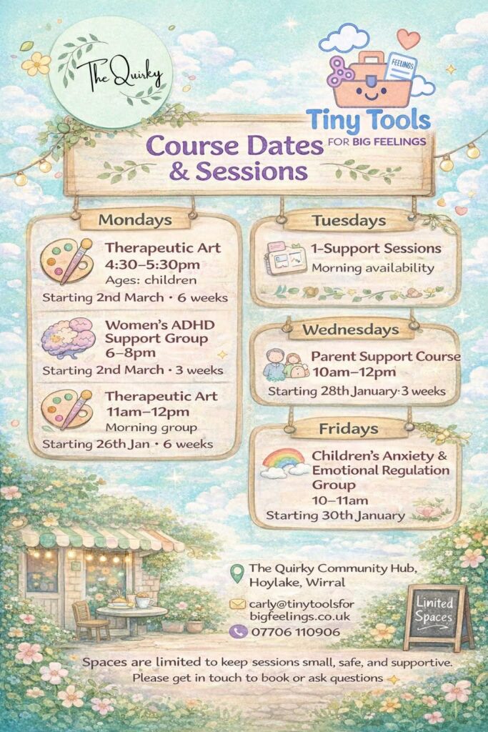 After a successful launch and growing community impact, Tiny Tools for Big Feelings, a Wirral-based CIC dedicated to supporting children, young people and parents with mental health challenges, has announced a new roll-out of free mental health courses and sessions for 2026.