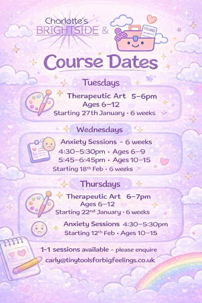 Carly explains: “Since launching the CIC in September 2025, the demand for support has been overwhelming as more and more children and parents are struggling with mental health. It’s so important that we address this as early on as possible. The feedback for our courses has been incredible and the 2026 programme continues to offer creative and therapeutic approaches tailored to age groups and needs.”
