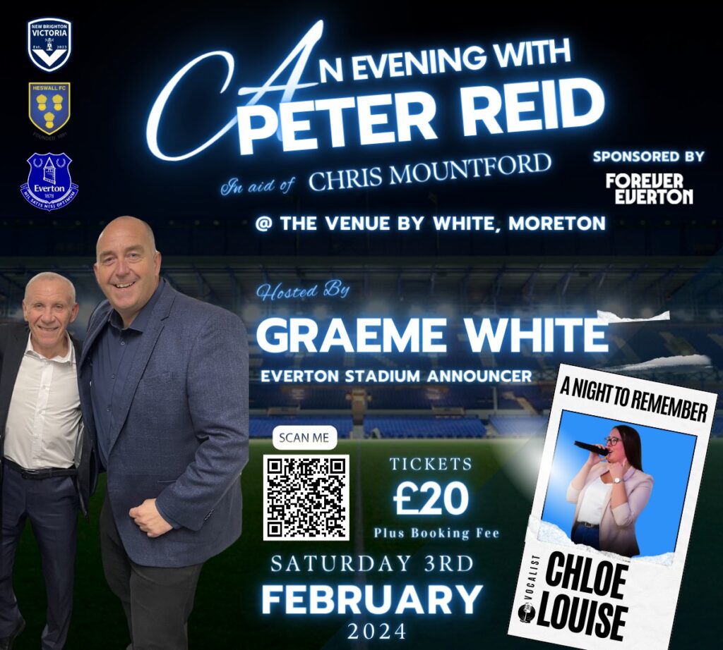 A fascinating night of football nostalgia was hosted at The Venue By White in Moreton on Saturday 3rd February, as football fans were treated to a talk and Q&A with the charismatic Peter Reid, as he shared stories and insights from throughout his career. The event was hosted and compered by Everton stadium announcer Graeme White and also featured live music, a raffle and an auction.