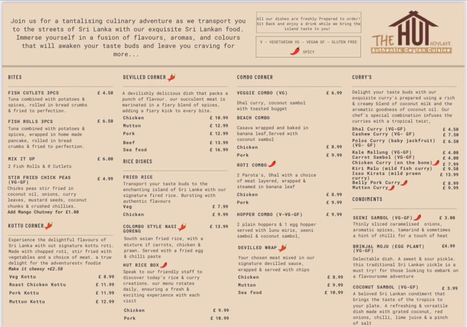 One customer said: “Great meal at The Hut last night. First time for both of us trying Ceylon/Sri Lankan cuisine. Gayan explained the menu to us and explained how it was all cooked from scratch using fresh ingredients and the difference between SriLanka and Indian food! What we had was amazing and we will definitely be back to explore the menu further. Would highly recommend a visit.”